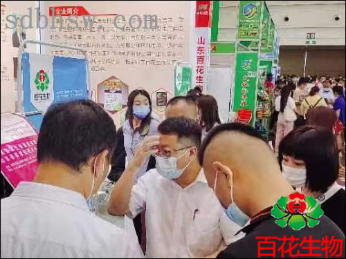 山東百花生物集團(tuán)有限公司位于W09展位,紅底白字展板清晰明了,液晶屏幕循環(huán)播放企業(yè)最新的宣傳片,吸引很多觀眾的參觀、咨詢。