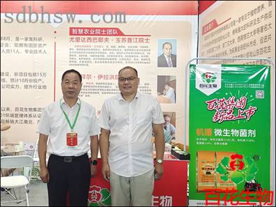 中國(guó)農(nóng)業(yè)技術(shù)推廣協(xié)會(huì)會(huì)長(zhǎng)陳生斗先生(左)與百花生物馬欽波經(jīng)理(右)