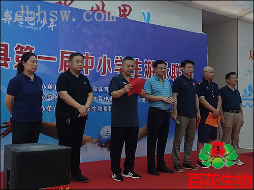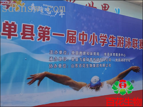 單縣第一屆中小學(xué)生游泳聯(lián)賽開(kāi)幕,百花生物集團(tuán)成協(xié)辦單位